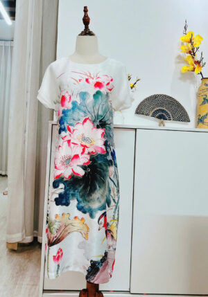 Đầm Giao Thu – lụa tơ tằm cát tường hoa đỏđ1.350K -